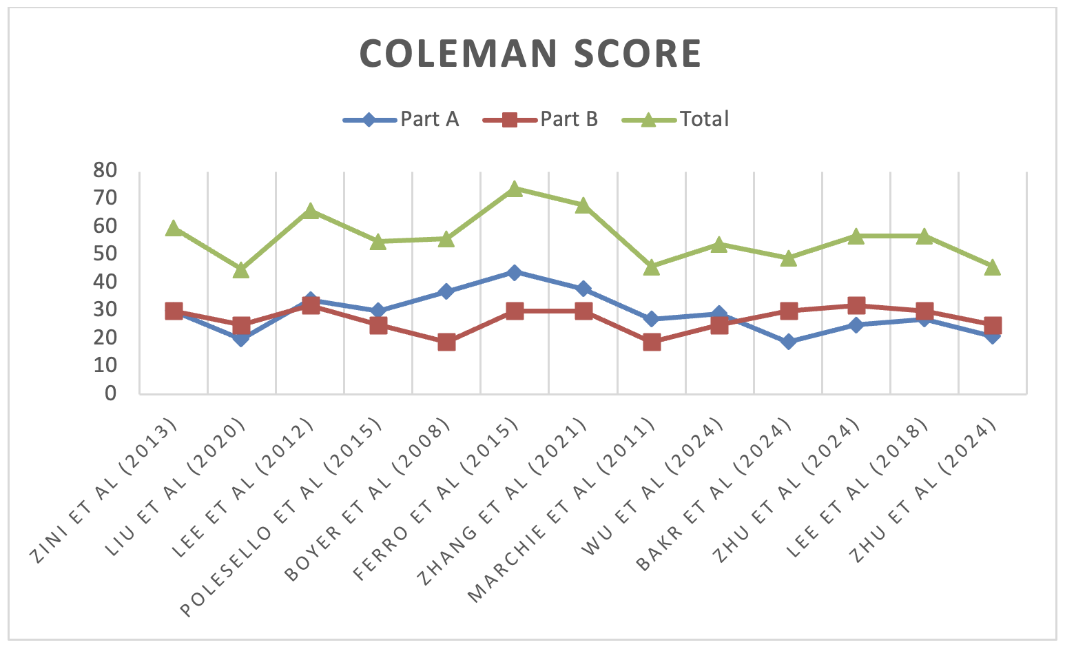 Figure 2. Retrospective studies analysis performed through the modified Coleman Methodology Score.