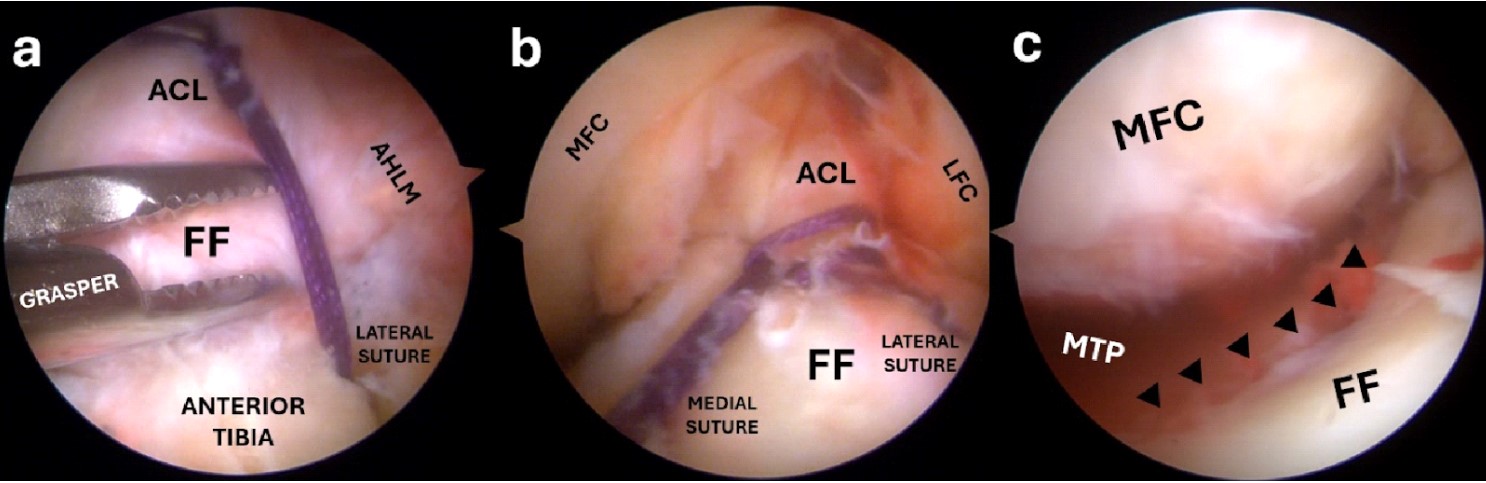 ACL, anterior cruciate ligament; FF, fracture fragment; AHLM, anterior horn of the lateral meniscus; MFC, medial femoral condyle; LCF, lateral femoral condyle; MTP, medial tibial plateau.