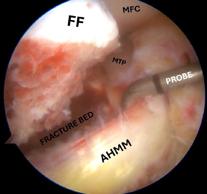 FF, fracture fragment; MTP, medial tibial plateau; AHMM, anterior horn of the medial meniscus.